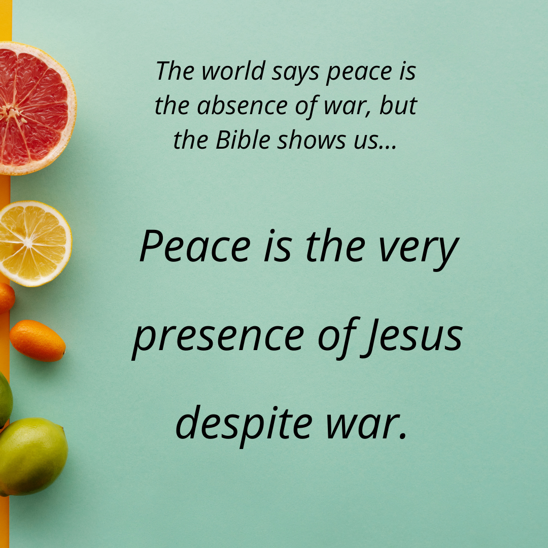 The world says peace is the absence of war. But God shows us that peace is the very presence of Jesus despite war. He is our life and He cannot be taken away from us.